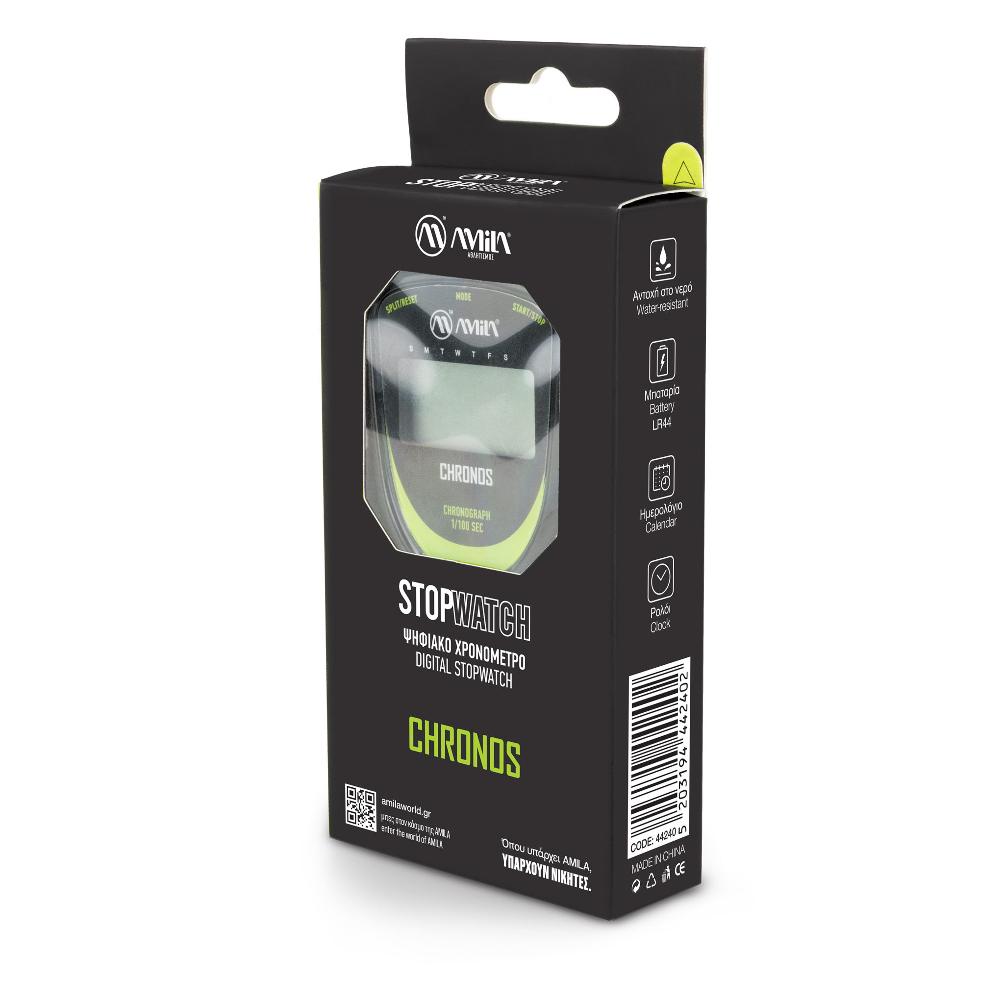 Το AMILA Chronos είναι ένα ψηφιακό χρονόμετρο που σχεδιάστηκε για αθλητές και προπονητές που απαιτούν μέγιστη ακρίβεια χρονομέτρησης σε κάθε άσκηση. Με ακρίβεια 1/100 δευτερολέπτου για τα πρώτα 30 λεπτά και δυνατότητα καταγραφής split χρόνου, αυτό το αθλητικό χρονόμετρο σού επιτρέπει να μετράς με απόλυτη συνέπεια διαστήματα, γύρους και προγράμματα. Η ευκρινής οθόνη με μεγάλα, ευανάγνωστα ψηφία εξασφαλίζει ότι θα βλέπεις τα δεδομένα σου καθαρά και άμεσα, ακόμη και κατά τη διάρκεια έντονης προπόνησης.