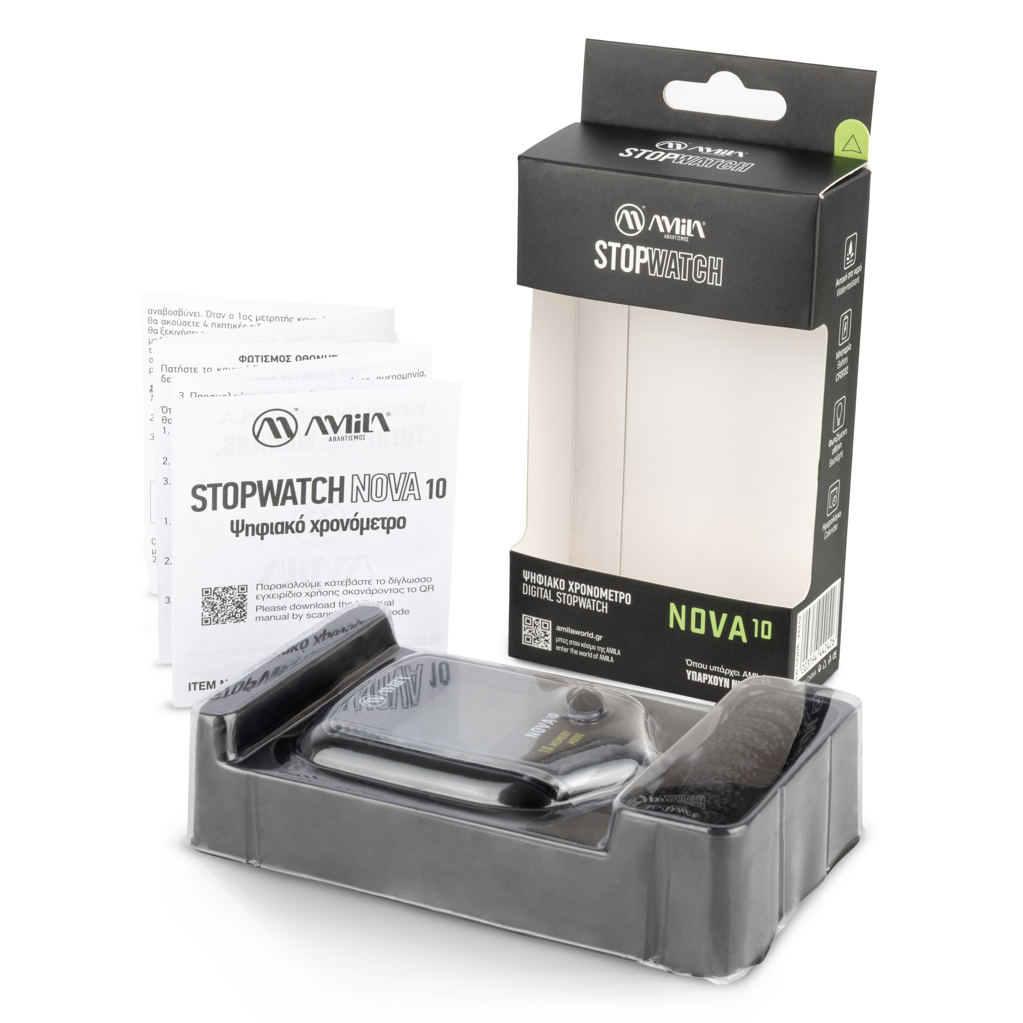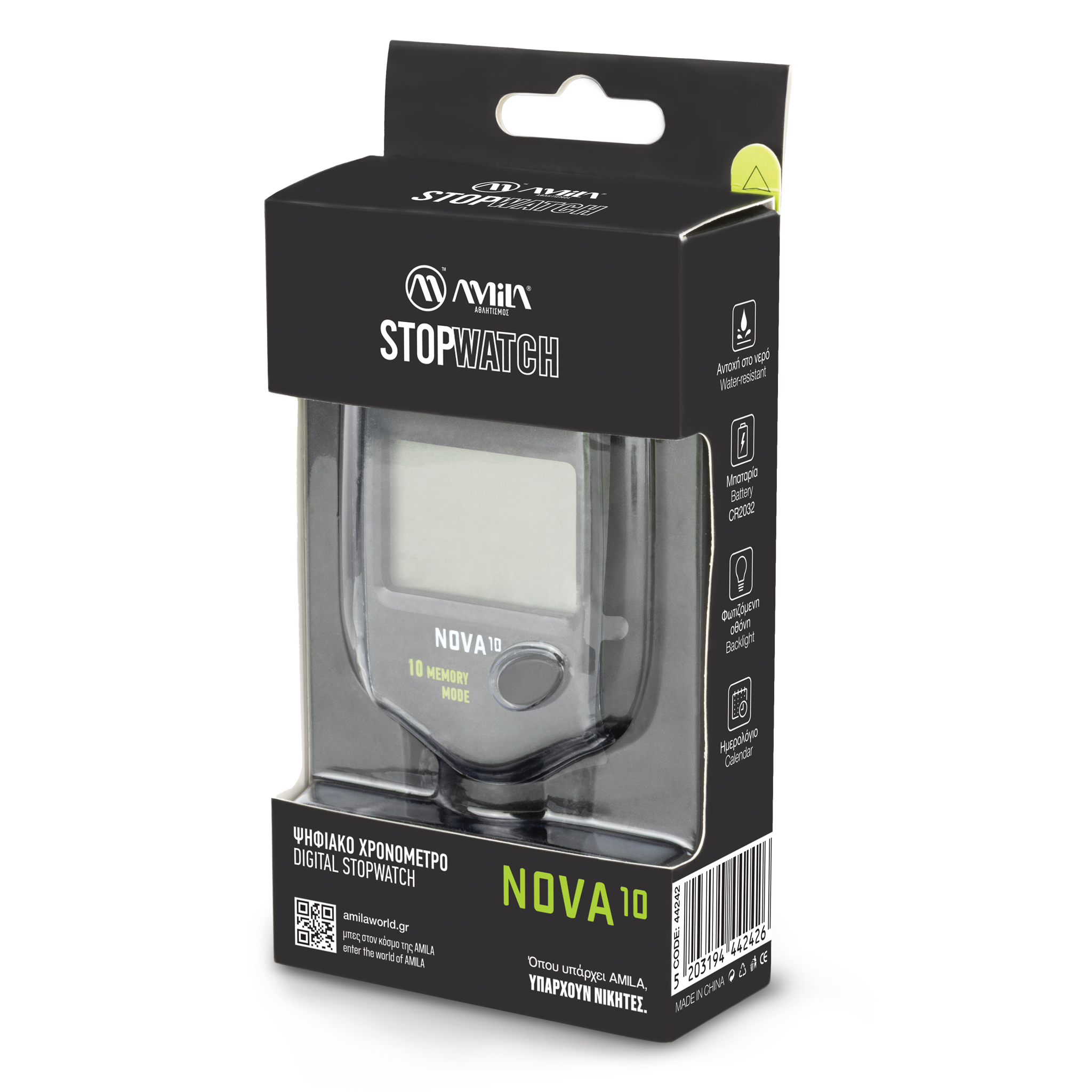 Το AMILA Nova 10 είναι ένα επαγγελματικό αθλητικό ψηφιακό χρονόμετρο προπόνησης που συνδυάζει προηγμένες δυνατότητες με εξαιρετική αντοχή, για να καλύπτει κάθε απαίτηση υψηλού επιπέδου. Με ακρίβεια χρονομέτρησης 1/100 δευτερολέπτου και δυνατότητα αποθήκευσης 10 split και lap χρόνων, καταγράφει με συνέπεια κάθε προσπάθεια – από τα σπριντ ταχύτητας μέχρι τις προπονήσεις αντοχής. Η φωτιζόμενη οθόνη εξασφαλίζει καθαρή ανάγνωση ακόμη και σε χαμηλό φωτισμό ή συννεφιά, ενώ η ανθεκτικότητα στο νερό το καθιστά ιδανικό για υπαίθρια χρήση και έντονη δραστηριότητα.