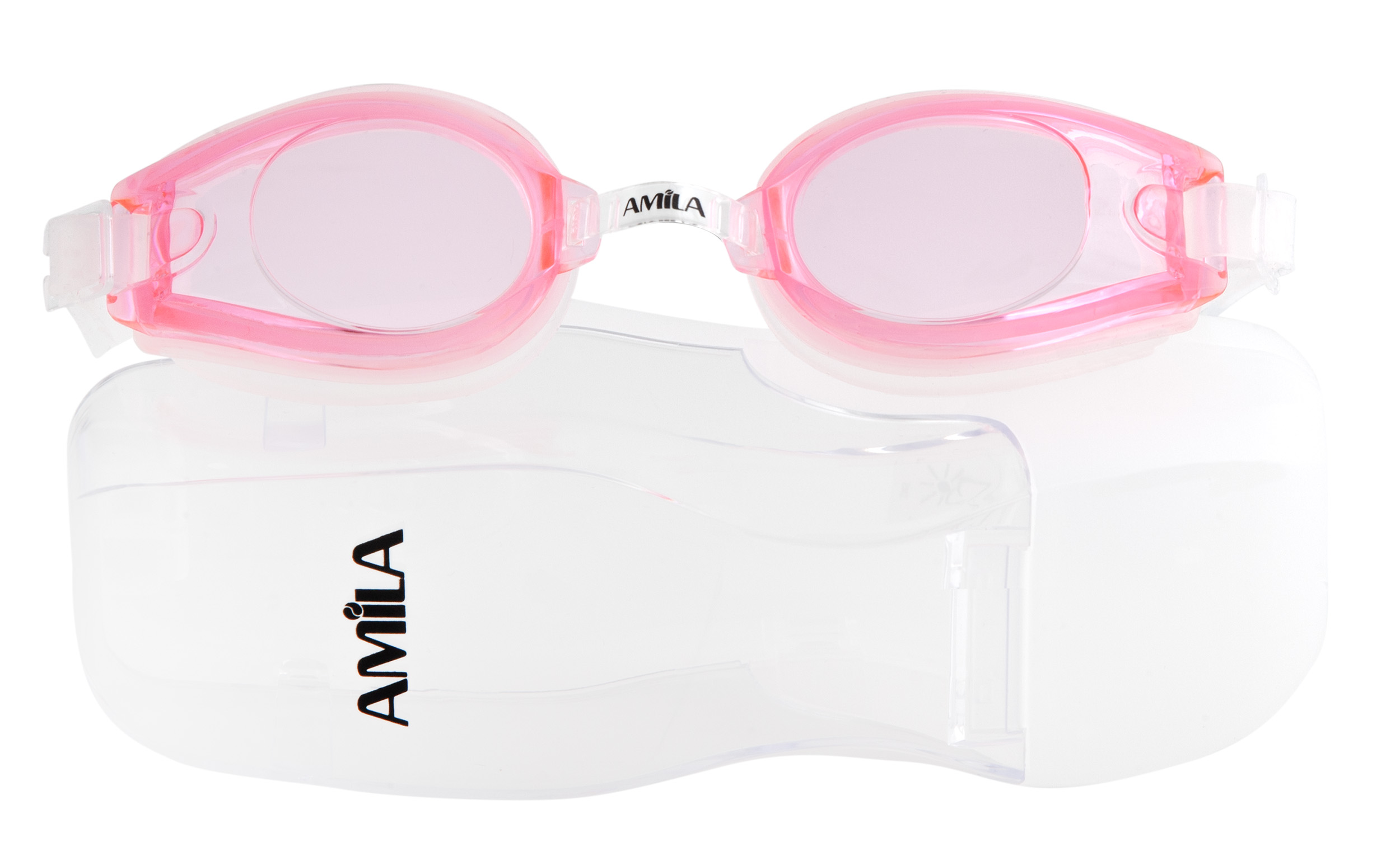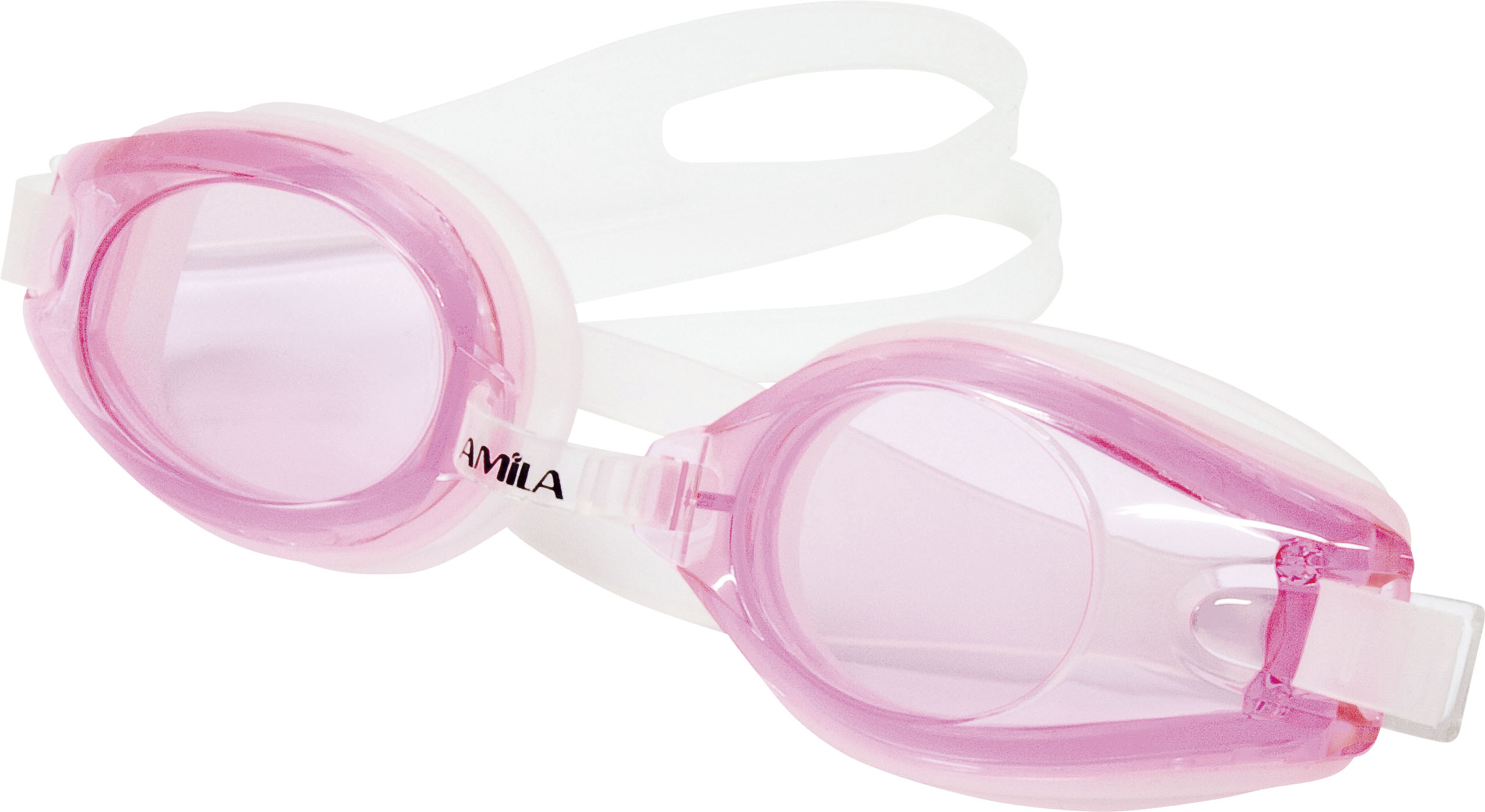 Γυαλιά κολύμβησης από την AMILA με λουράκι από σιλικόνη κατάλληλα για παιδιά. Ο φακός του γυαλιού είναι χρωματιστός ενώ γύρω από το μάτι θα βρείτε σιλικόνη για την τέλεια εφαρμογή. Η γέφυρα της μύτης είναι ρυθμιζόμενη για να μπορείτε να την προσαρμόσετε σύμφωνα με τις ανάγκες σας. Τέλος υπάρχει ρυθμιστής και στο λουράκι για να μεγαλώνει ή να μικραίνει και να δένει σωστά στο κεφάλι χωρίς να μπαίνουν νερά ενώ παράλληλα να είναι άνετο χωρίς να πιέζει υπερβολικά. Το λουράκι πίσω είναι διπλό και ενώνεται προς τα μπροστά, με αυτό τον τρόπο θα μπορείτε να προσαρμόσετε ακόμα και το δέσιμο στο πίσω μέρος του κεφαλιού (ψηλά η χαμηλά).
