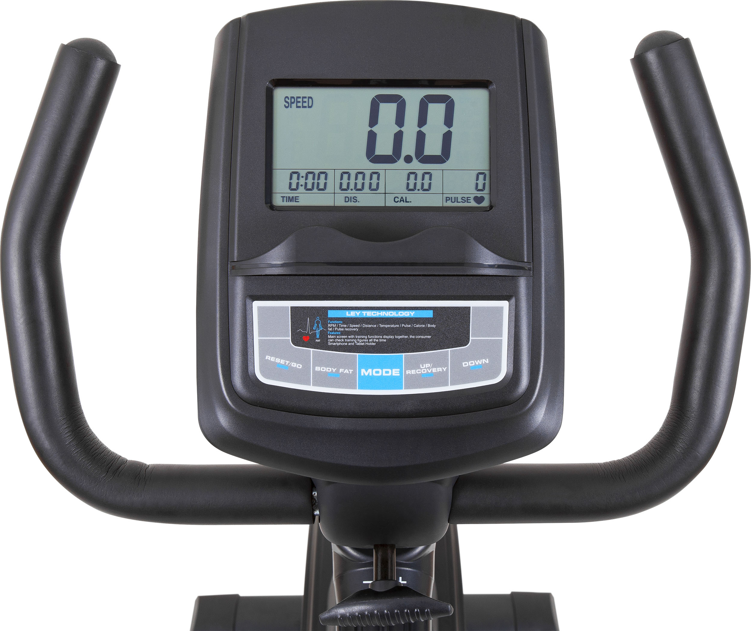 Το καθιστό ποδήλατο ATLAS 600R από την AMILA διαθέτει λαβές με επενδύσεις μαλακών υλικών για άνετο και γερό κράτημα. Οι γωνίες στις λαβές προσφέρουν διαφορετικά κρατήματα για περισσότερη άνεση και εναλλαγή θέσεων. Η κονσόλα του είναι αρκετά κομψή και πλήρως λειτουργική. Διαθέτει οθόνης τεχνολογίας LCD, όπου μπορείτε να δείτε σε αυτή όλες τις χρήσιμες πληροφορίες για την προπόνηση σας Χρόνος, Ταχύτητα, Απόσταση, Θερμίδες, Καρδιακοί Παλμοί, Περιστροφές/λεπτό, Ποσοστό λίπους, Αποκατάσταση καρδιακών παλμών. Τα διαφορετικά “παράθυρα” στην οθόνη την καθιστούν εύκολη στην ανάγνωση και στην χρήση. Στο κέντρο θα βρείτε μια θέση για το τάμπλετ σας για να απολαμβάνετε την αγαπημένη σας σειρά όσο κάνετε άσκηση.