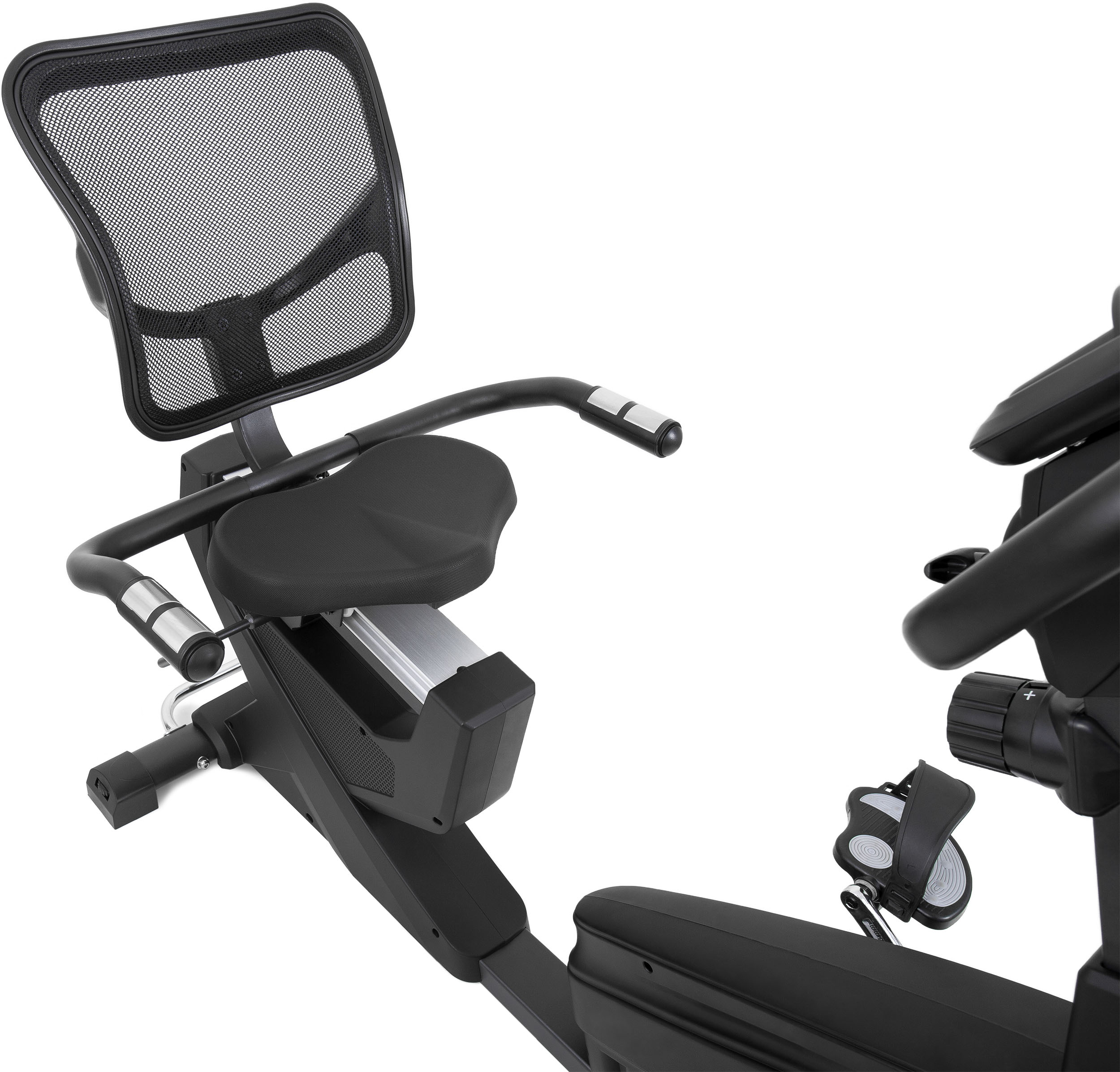 Το κάθισμα είναι από αφρώδη υλικά, τα οποία προσφέρουν προστασία αλλά και καλή στήριξη. Διαθέτει πλάτη σε στυλ διχτυού που βοηθάει στον καλύτερο αερισμό, και στην μείωση της θερμοκρασίας του σώματος. Δεξιά και αριστερά από το κάθισμα θα βρείτε 2 λαβές με επένδυση μαλακών υλικών που προσφέρουν άνετο και γερό κράτημα, ενώ στις άκρες των λαβών θα βρείτε τους αισθητήρες καρδιακών παλμών. Οι αισθητήρες είναι εργονομικά τοποθετημένοι έτσι ώστε να ακουμπάνε τα χέρια σας πάνω τους όντας σε φυσική θέση. Αυτό θα βοηθήσει ώστε να παρακολουθείτε καλύτερα την προπόνηση σας (τους παλμούς, τις θερμίδες που καίτε κλπ) απευθείας από την οθόνη του ποδηλάτου.