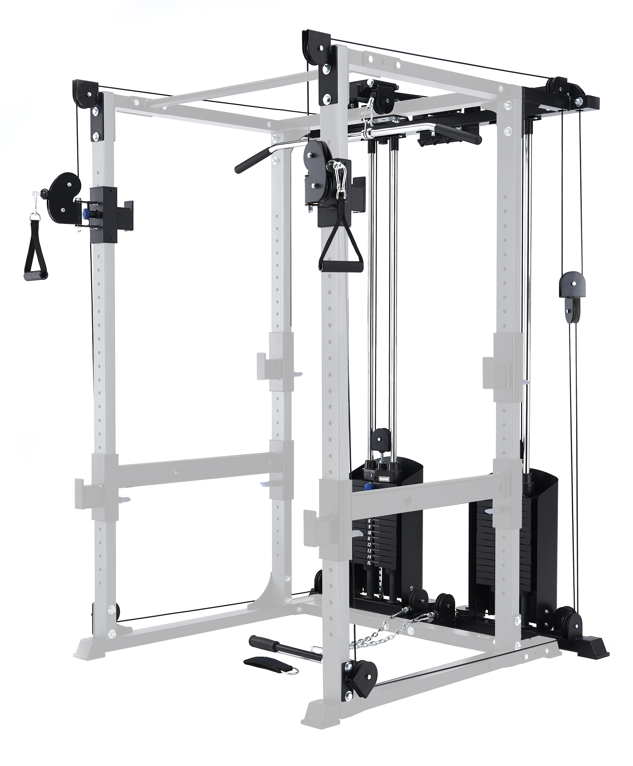 Η διπλή τροχαλία της Bodycraft διαθέτει πλάκες βαρών συνολικού βάρους 182