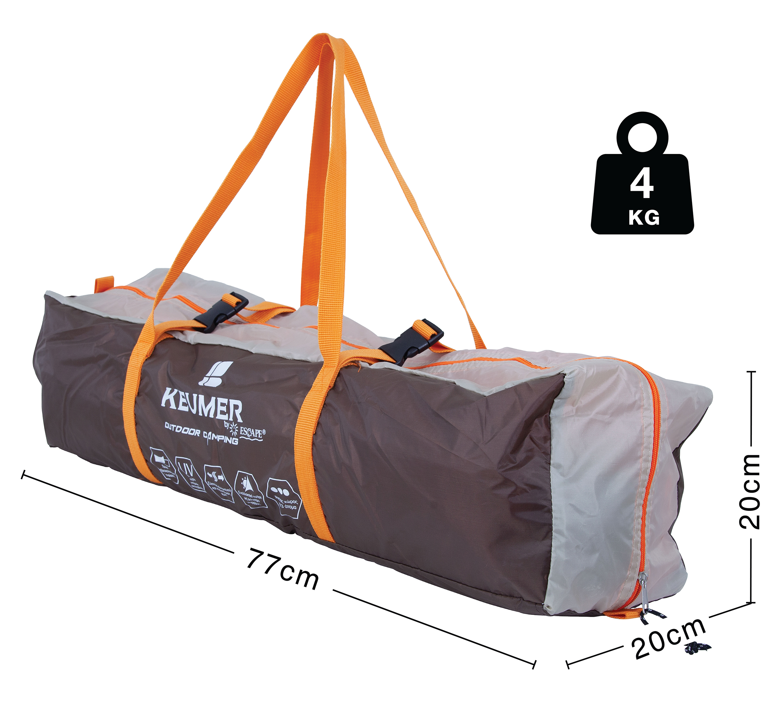 Η σκηνή Camping από την Keumer διαθέτει πάτωμα αντοχής από ύφασμα Oxford 210D. Το πάνω μέρος αποτελείται από 2 διαφορετικά στρώματα. Τόσο το