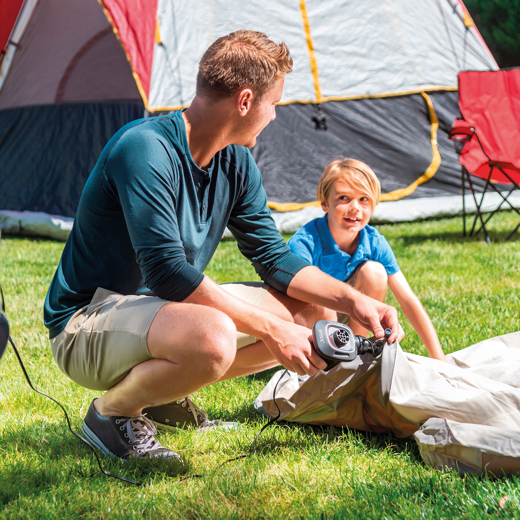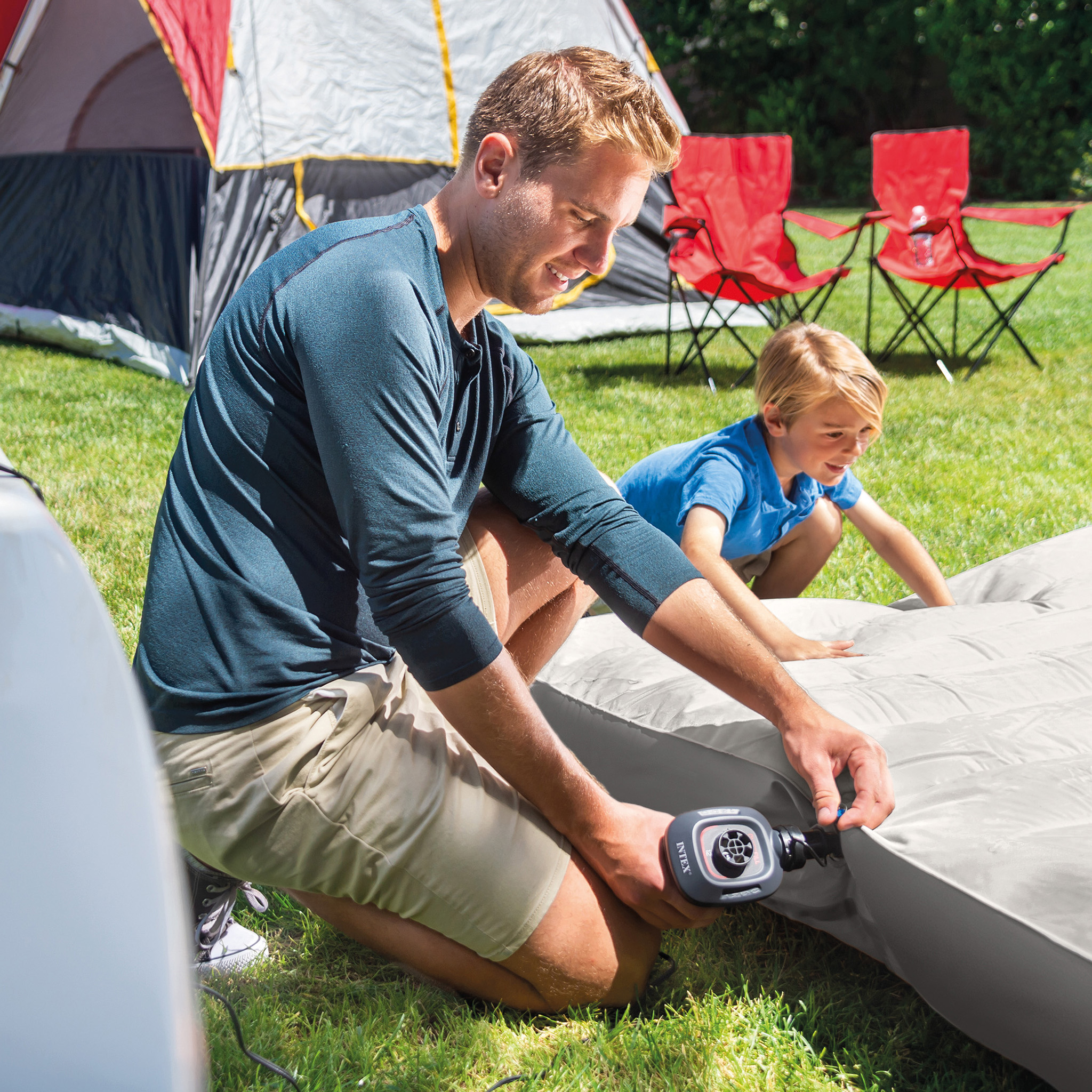 Ηλεκτρική τρόμπα από την Intex, με καλώδιο σύνδεσης σε αμάξι, είναι η τέλεια λύση για εξωτερική χρήση για φούσκωμα στρωμάτων ύπνου, βαρκών κλπ. Ο σχεδιασμός της, της επιτρέπει να τη χωράτε στην παλάμη σας άνετα. Απλά συνδέστε το βύσμα 12 Volt DC στην πρίζα του αμαξιού σας και ξεκινήστε να φουσκώνετε ή ακόμα και να ξεφουσκώνετε. Περιλαμβάνει αντάπτορα για να μπορείτε να φουσκώνετε πολλά διαφορετικά φουσκωτά, ενώ η ροή των 650 Λίτρων ανά λεπτό επιταχύνει την διαδικασία κάνοντας την πολύ εύκολη. Μην φουσκώσετε ξανά χειροκίνητα το φουσκωτό σας, πάρτε την Intex Quick Fill™ DC Electric Air Pump και κάντε την δουλειά εύκολα και γρήγορα